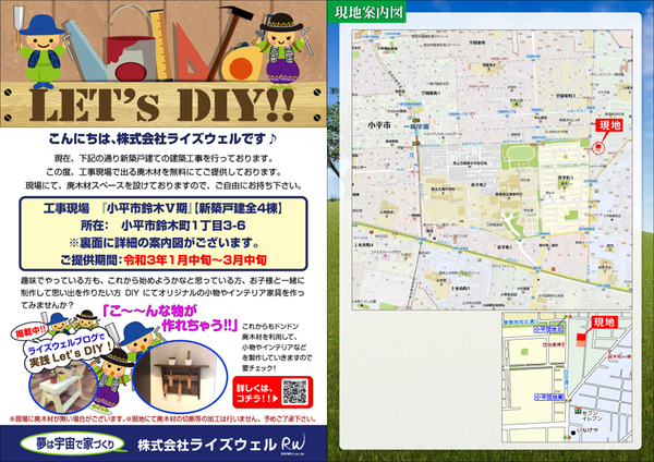 『Let's DIY』 小平市鈴木町Ⅴ期【全4棟】で廃木材の無料提供をしています♪