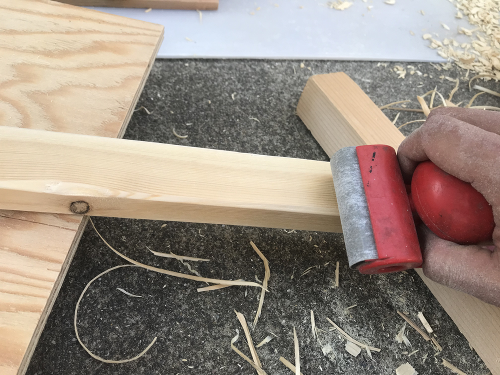 【工程②角を落とし、部材を面取りし、やすり掛けする】